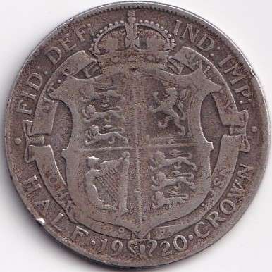 1920 United Kingdom ½ Crown – George V 2nd type Silver Coin Weight 14.14 g