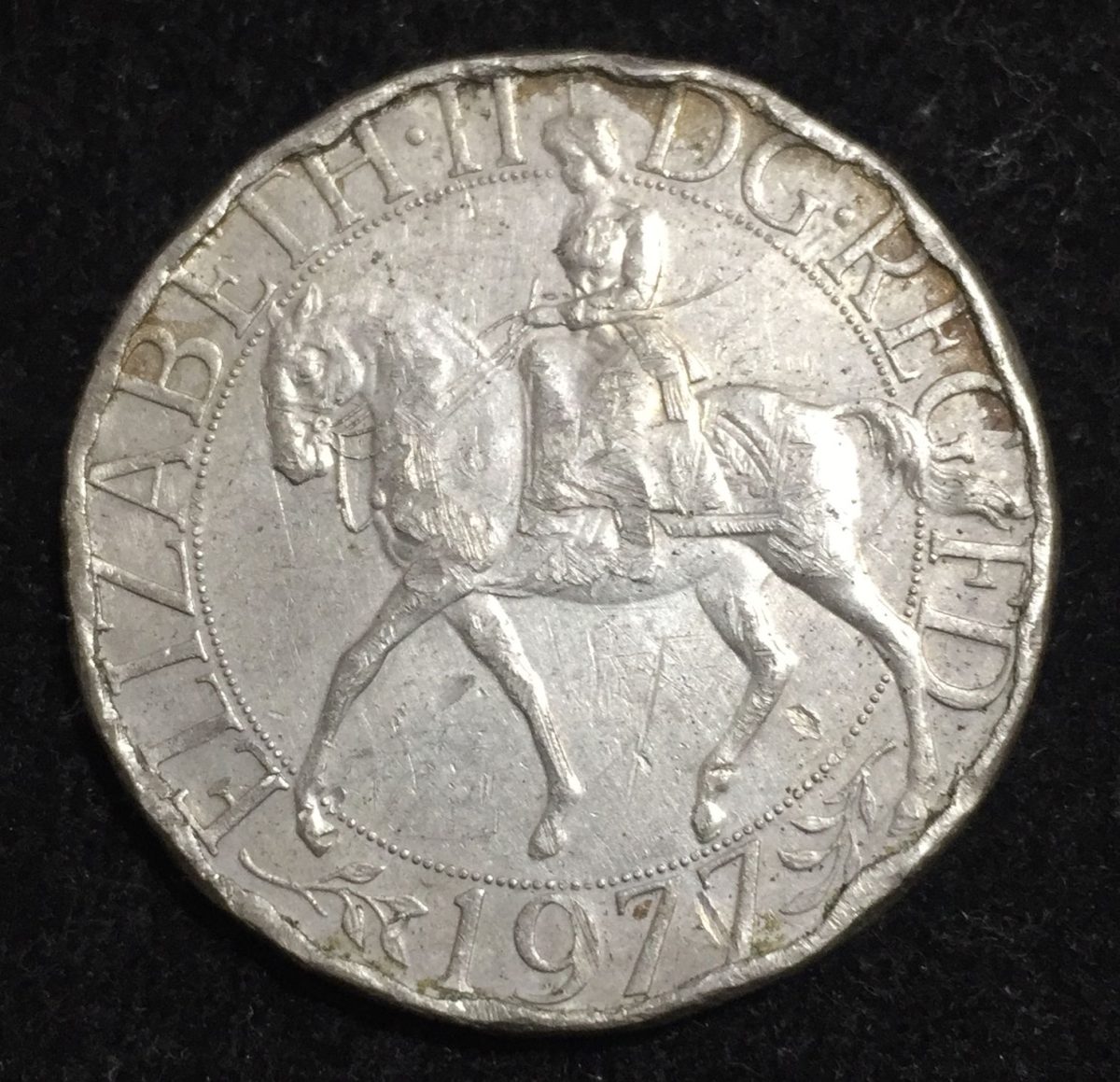 (1977) United Kingdom 25 New Pence – Elizabeth II Silver Jubilee Commemorative issue (Weight 28.28) grare Lowest Price coin #A-70