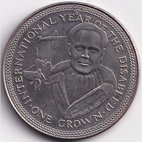 1981 Isle of Man 1 Crown – Elizabeth II Sir Douglas Bader Commemorative issue Coin