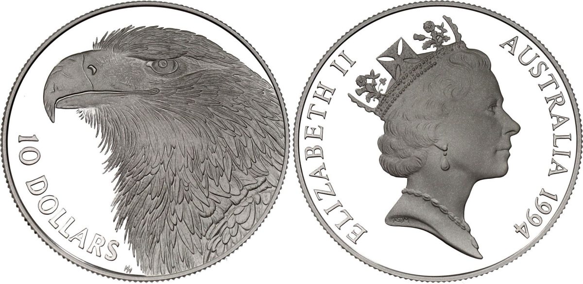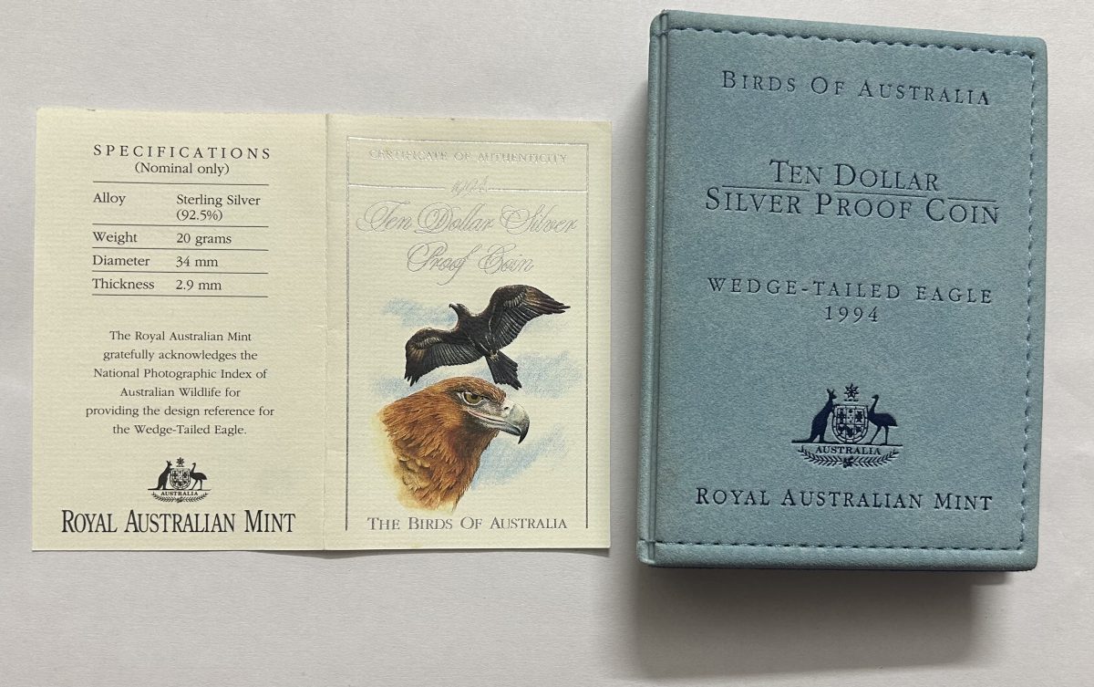 1994 Birds of Australian $10 Ten Dollar ‘wedge-Tailed Eagle – Silver Proof Coin 20g
