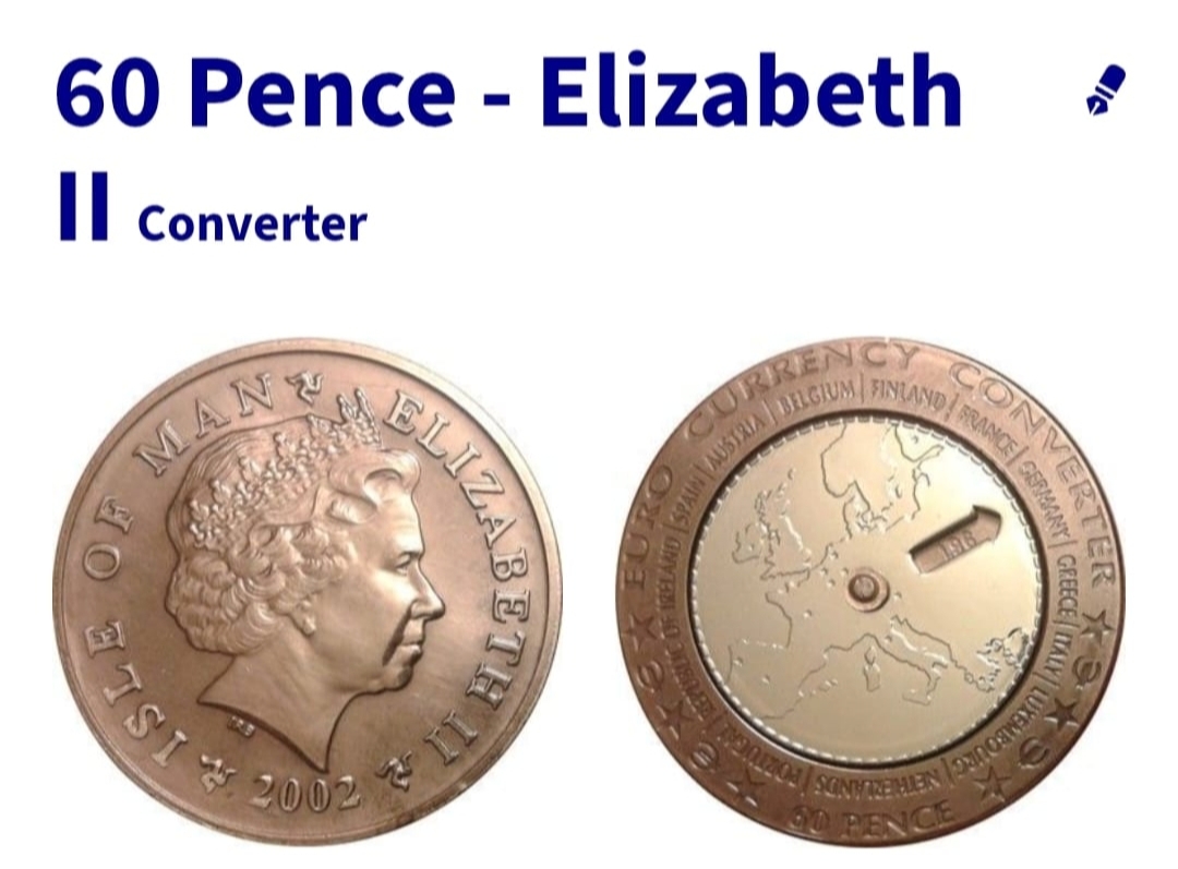 2002 ISLE OF MAN 60P 60 PENCE EURO CURRENCY CONVERTER *RARE*