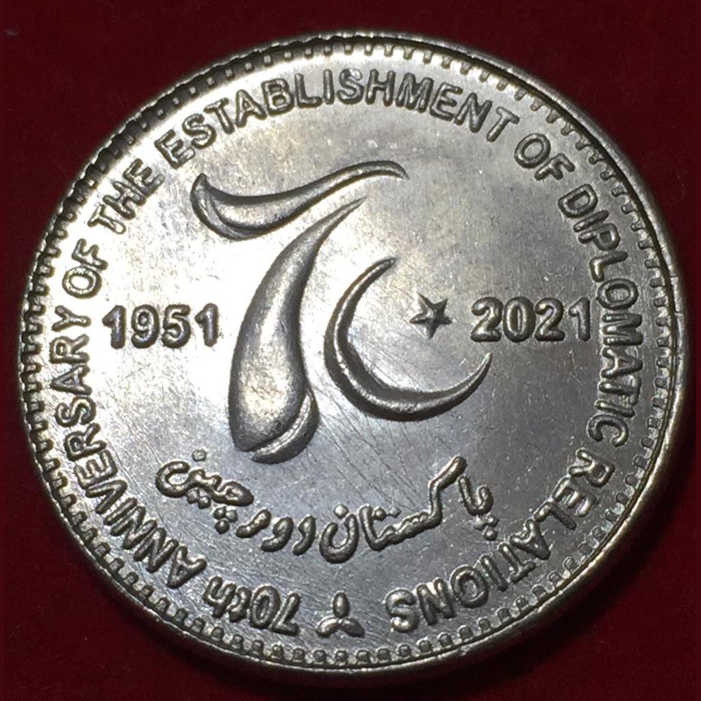Step into the world of numismatics with the exquisite 2021 Pakistan 70 Rupees coin commemorating the 70th anniversary of diplomatic relations with China. Issued by Pakistan in UNC (NEW) condition, this circulating commemorative coin holds a special place in history. Crafted from copper-nickel, it weighs 13.00g with a diameter of 30.00mm and a unique round shape. The design showcases intricate details symbolizing the enduring bond between the two nations. This limited-edition coin, with the serial number N#297099, is a prized addition for collectors seeking rare and significant pieces. Its gem uncirculated state ensures pristine quality, making it a valuable asset for any collection. Whether you’re a seasoned collector or a history enthusiast, this coin offers a tangible connection to a milestone moment in diplomatic history.