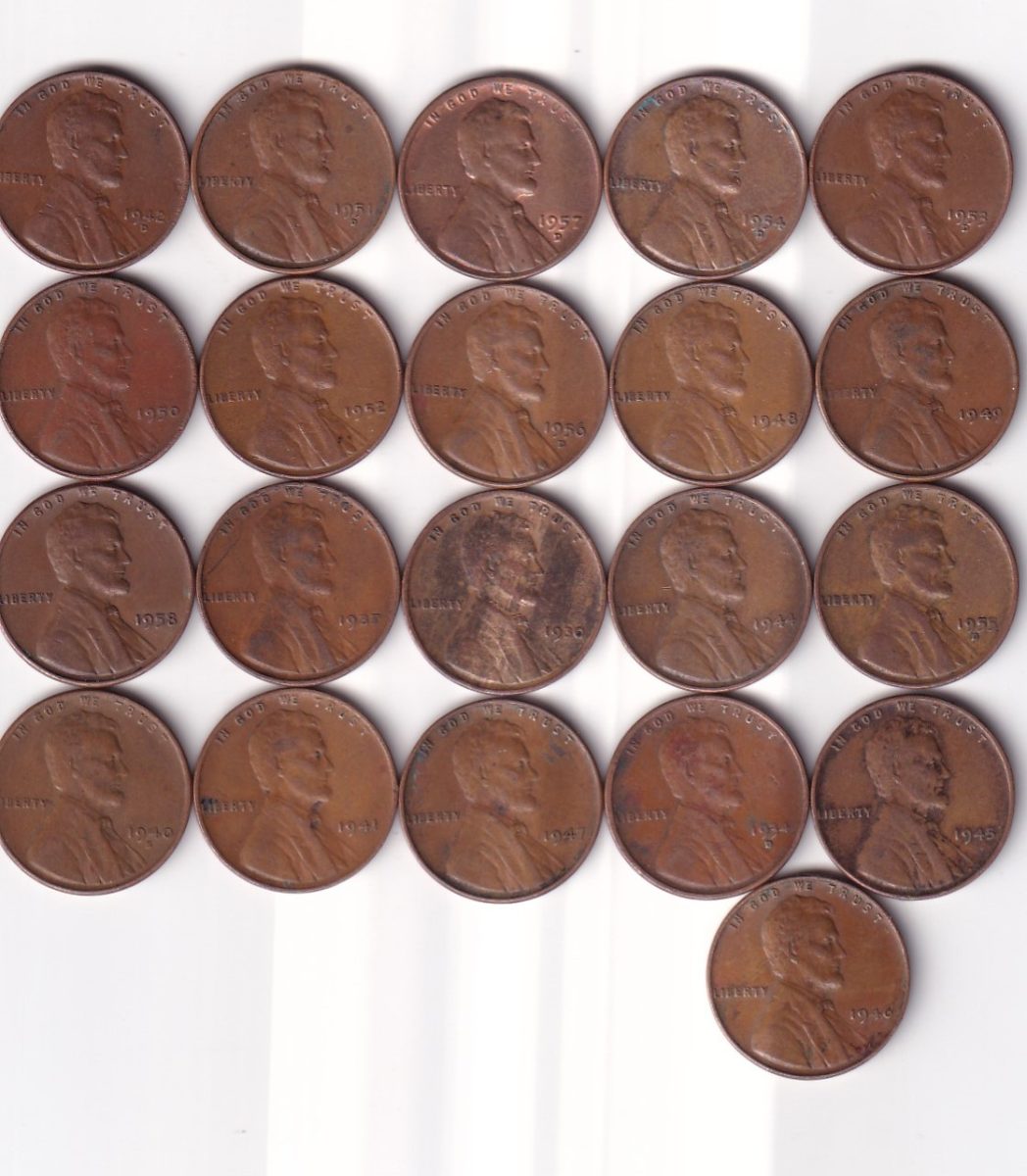 21 DIFFERENT ONE CENT USA ” LINCOLN – WHEAT EARS REVERSE ” ALL DIFFERENT DATES