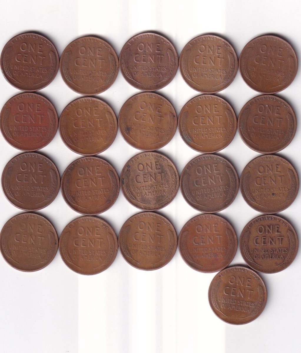 21 DIFFERENT ONE CENT USA ” LINCOLN – WHEAT EARS REVERSE ” ALL DIFFERENT DATES # I-809