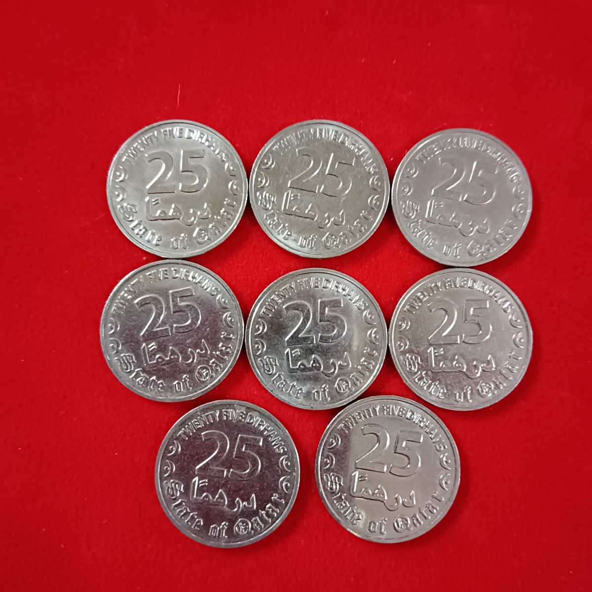 - 25 Twenty Five Dirhams State of Qatar 8 Pcs Given Gem Unc Condition