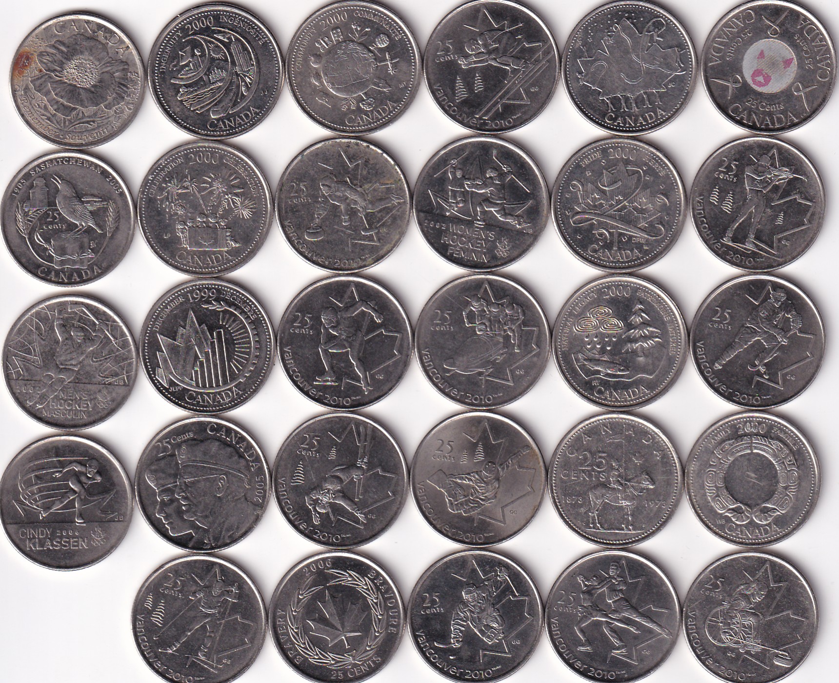 29 Different Canada 25 Cent Commemorative Coin Set (29 Pcs Set) #Z-179