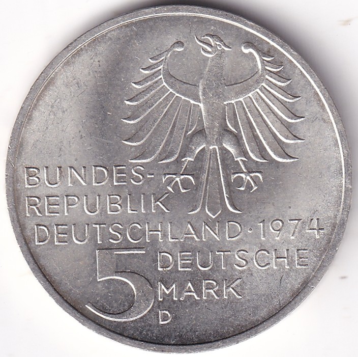 5 Mark 1974 Immanuel Kant Germany Silver Unc Coin