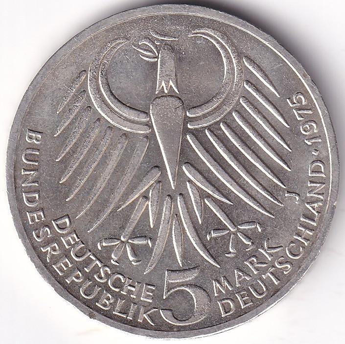 5 Mark 1975 Friedrich Ebert Germany Silver Unc Coin