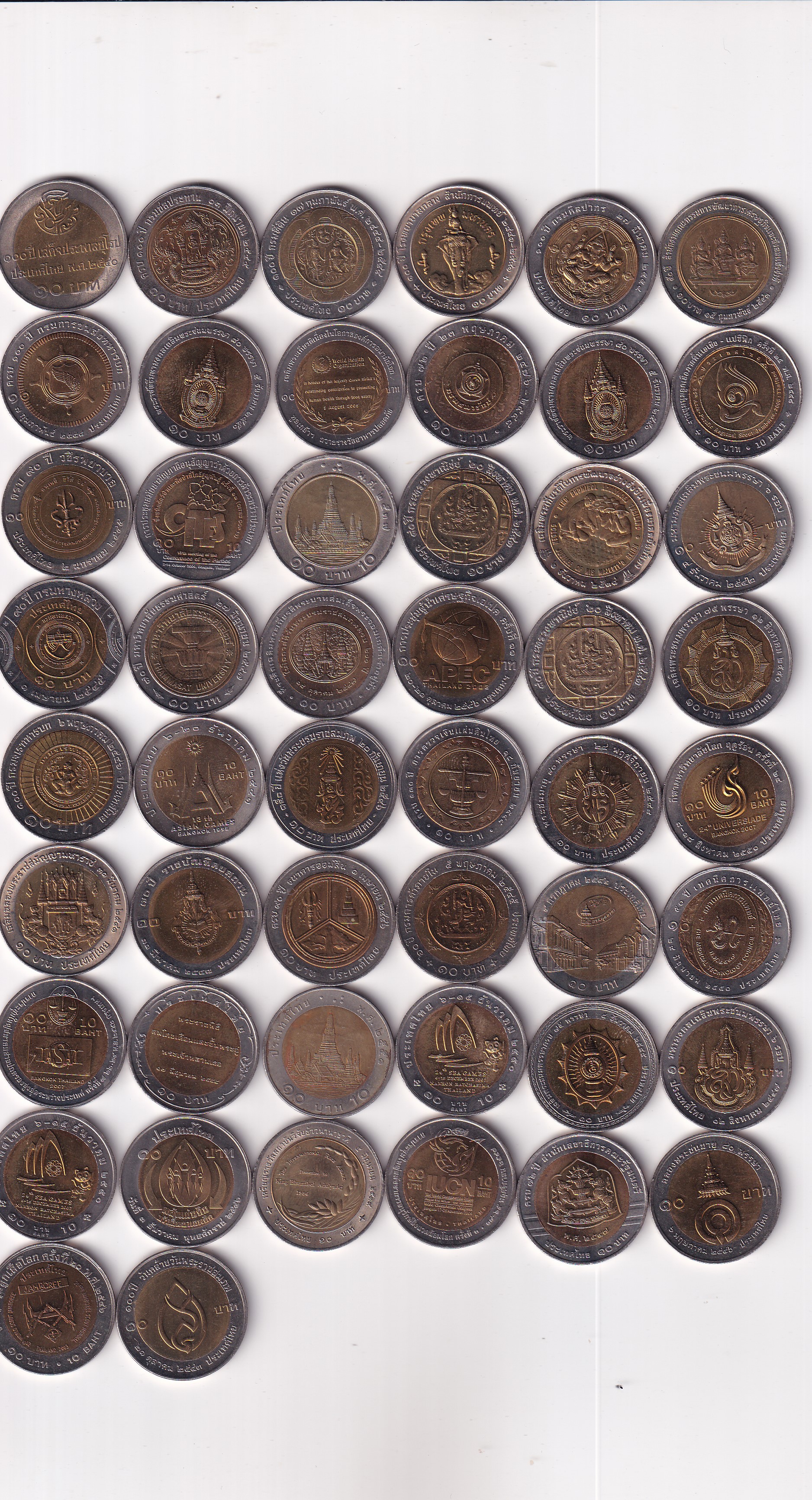 50 DIIFFERENT THAILAND 10 BAHT COMMEMORATIVE RARE BIMETALLIC UNC COIN SET( VERY HARD TO FIND) 50 DIFFERENT