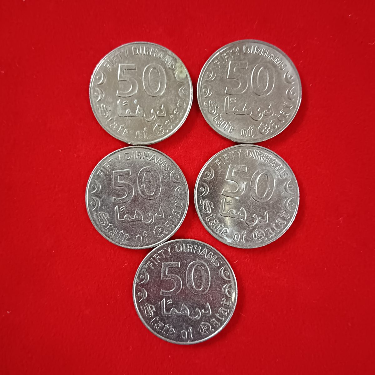 - 50 Dirhams State of Qatar 5 Pcs Given Unc Condition Coins