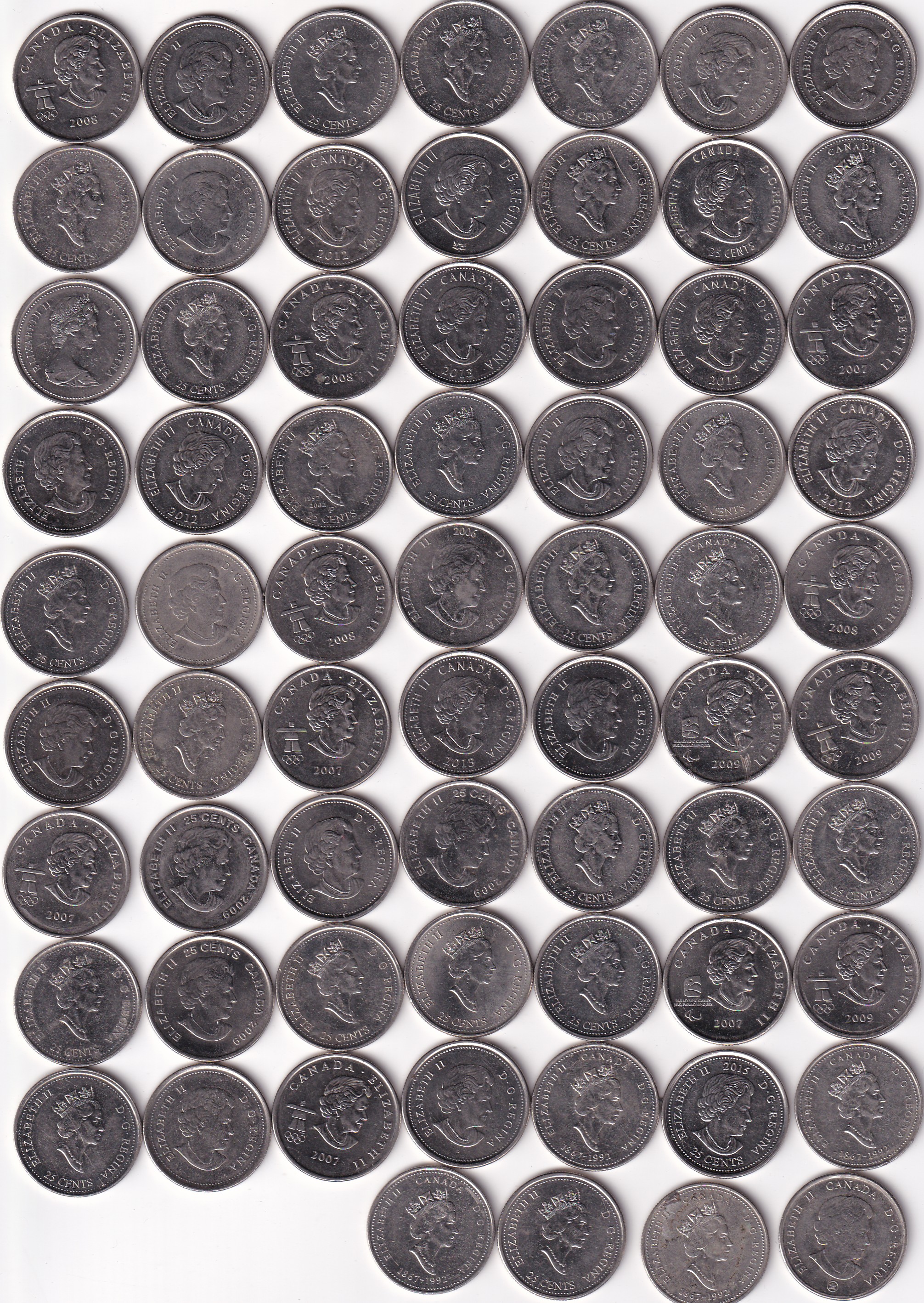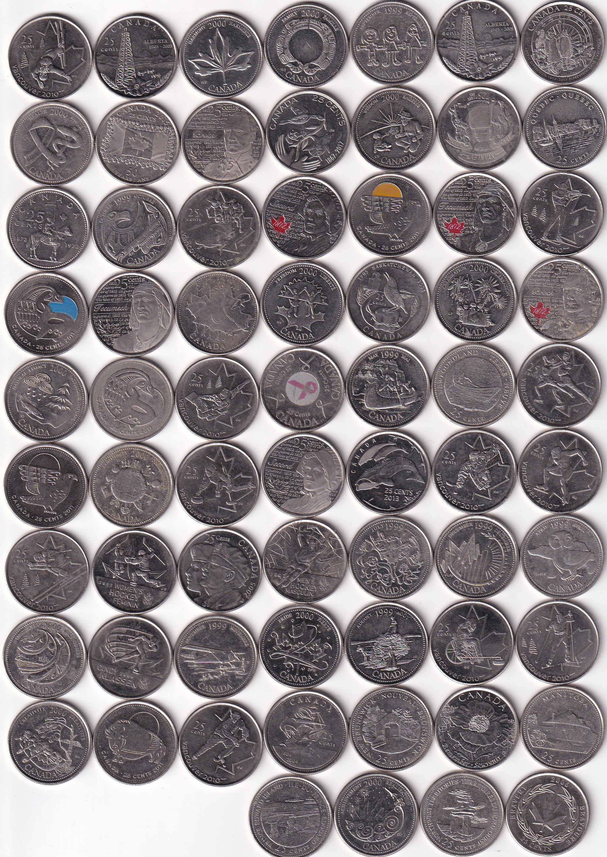 67 Different Canada 25 Cent Commemorative Coin Set (67 Pcs Set) #Z-157