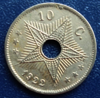 Belgian Congo, 10 Centimes, 1922, Albert I, KM# 18, Circulated Condition.
