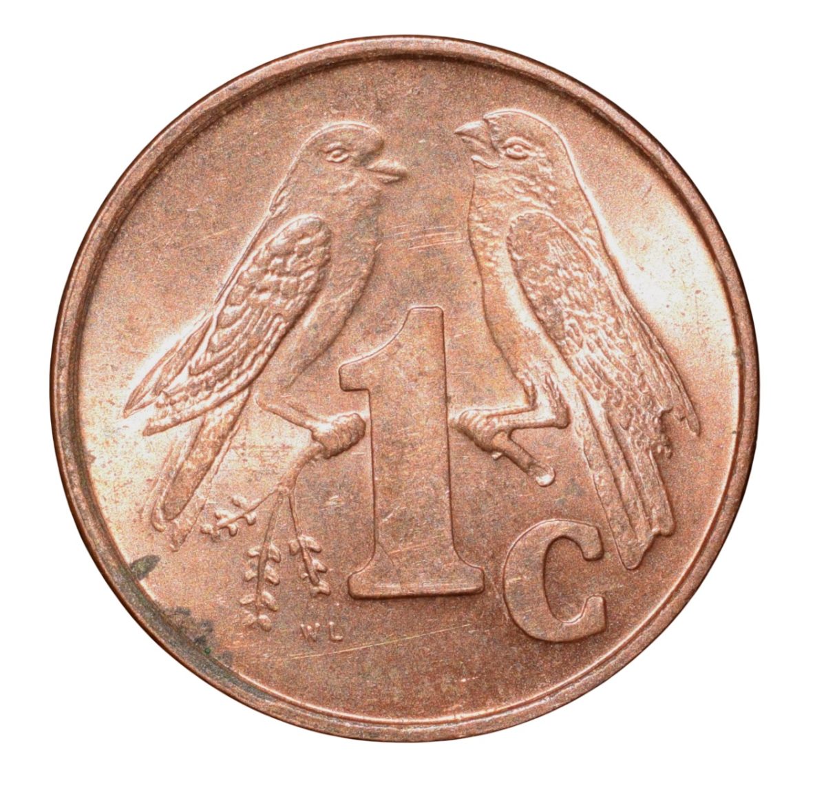 Bronze 1 Cent of South Africa (AD 2001) with Cape sparrows UNC Grade