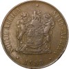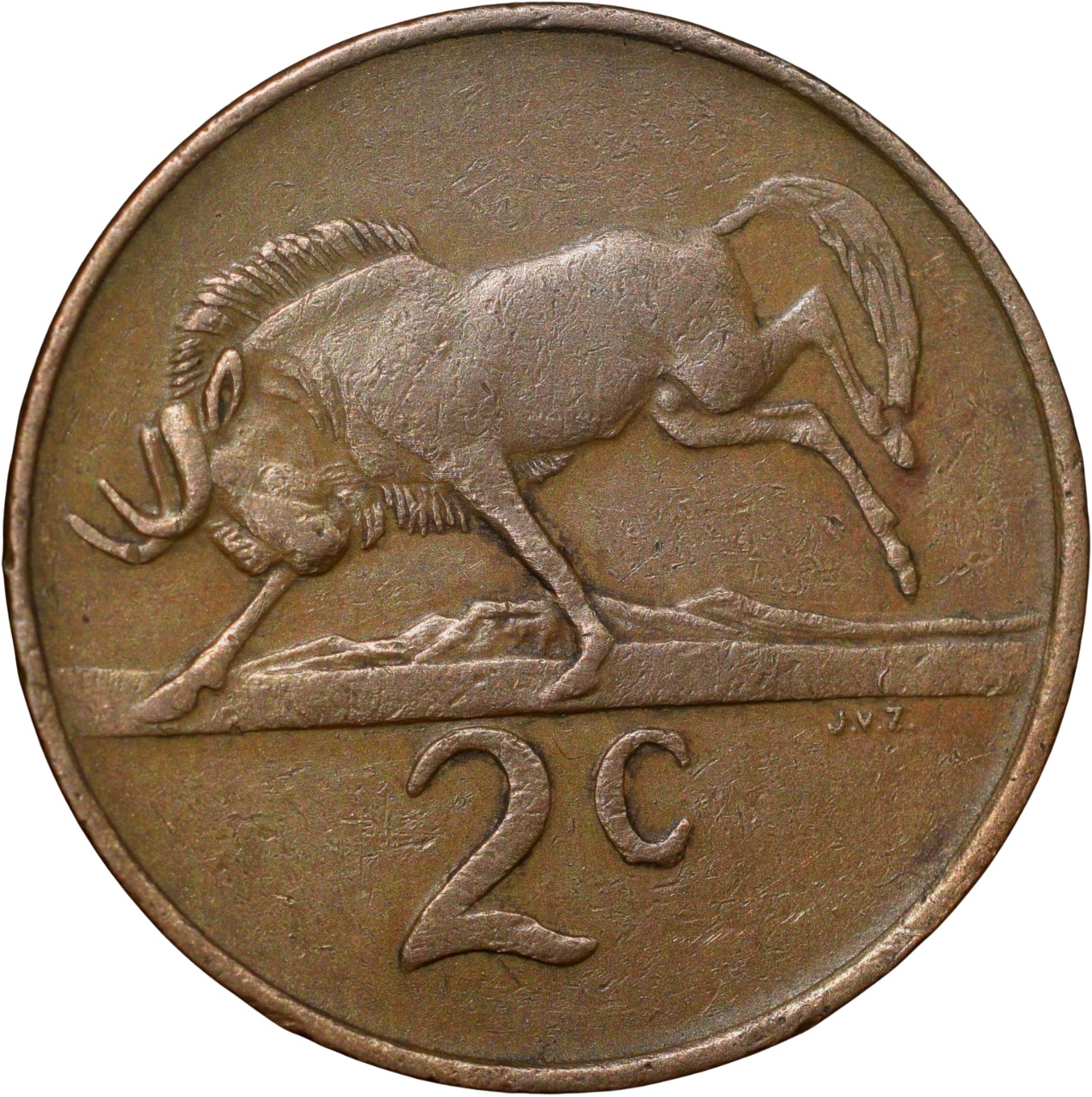 Bronze 2 Cents of South Africa (AD 1988) with Wildebeest bucking left