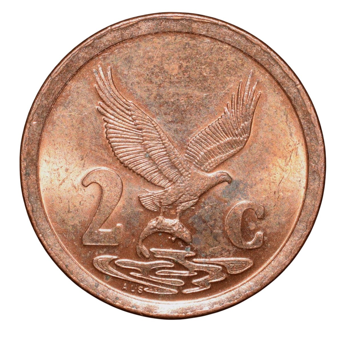Bronze 2 Cents of South Africa (AD 1997) with Eagle holding a fish with its talons UNC Grade