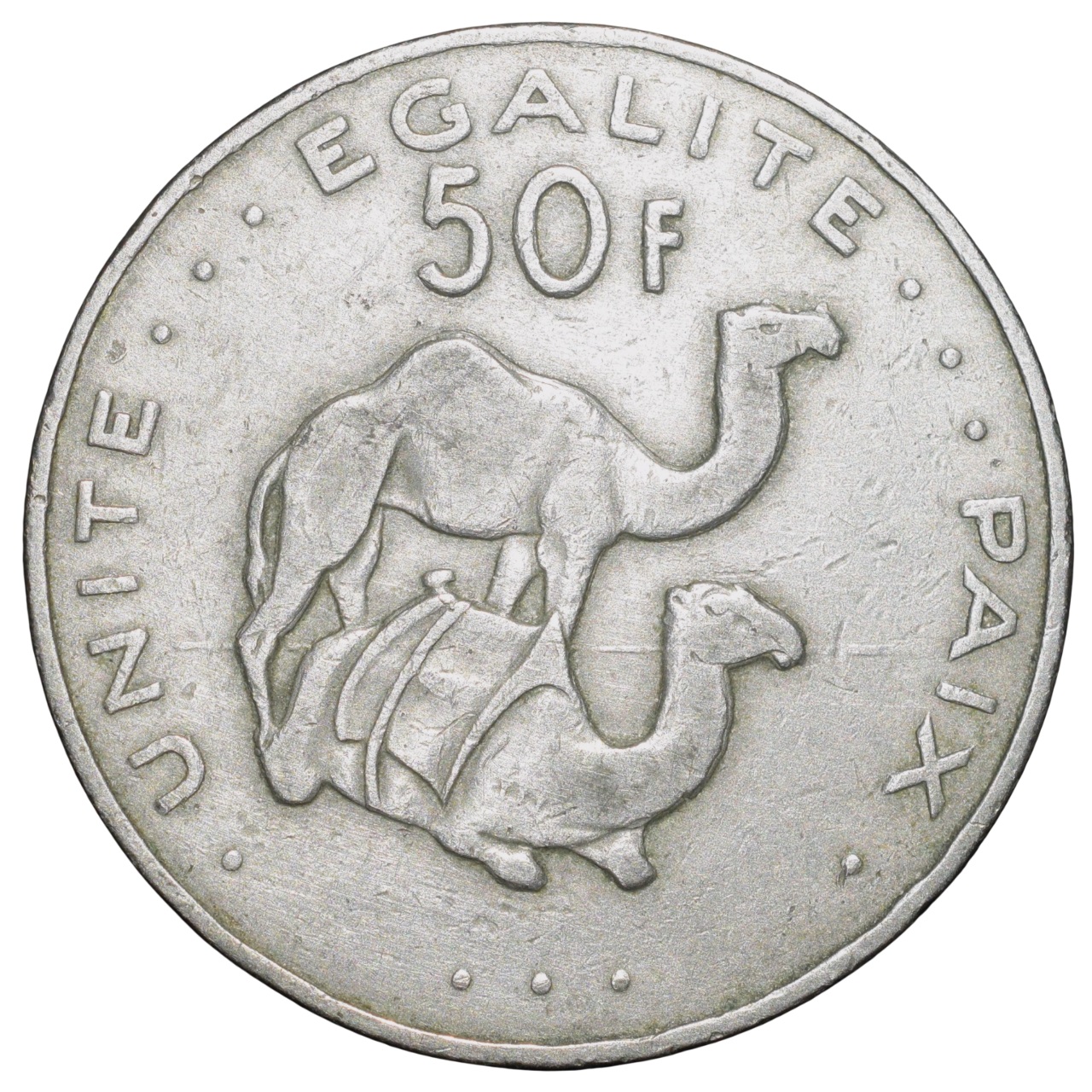 Copper-Nickel 50 Francs of Djibouti (AD 2010) with Two Camels facing right