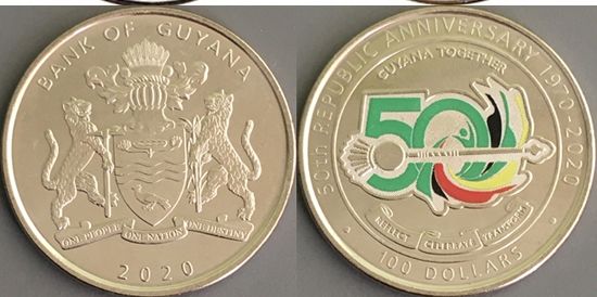Guyana, 100 Dollars, 2020, 50 Years of the Republic, Colour, KM #62, UNC Condition.