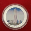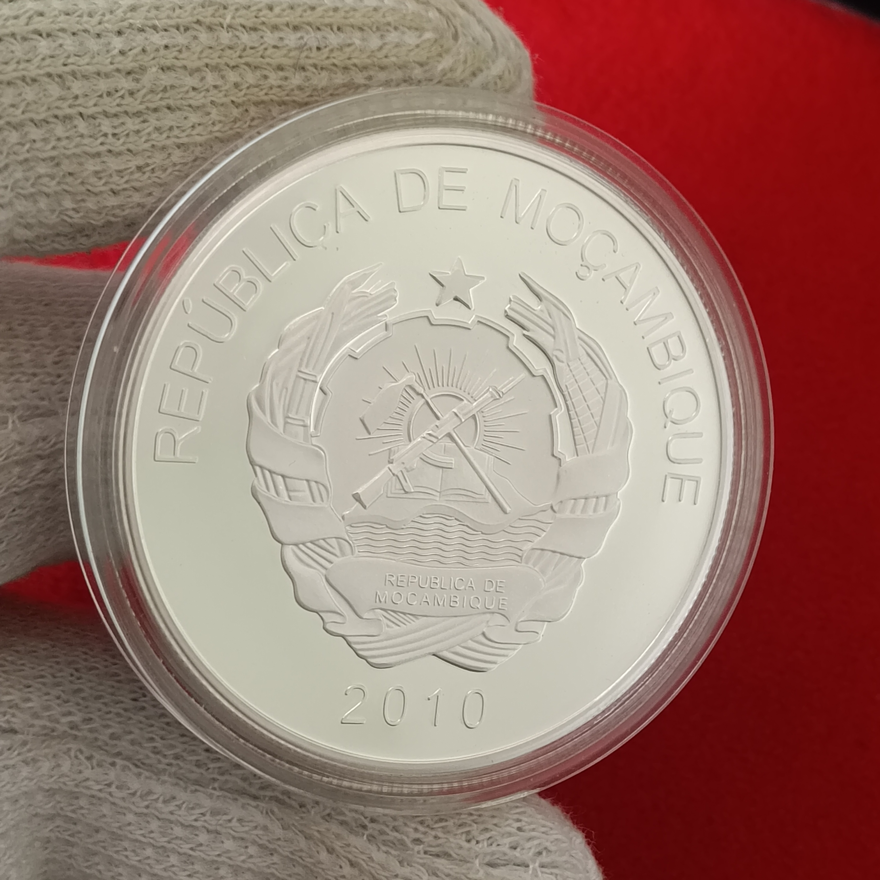 commemorative medal from Mozambique, issued in 2010, which is part of a series called “Mega Towers” or “World Skyscrapers”. The medal’s obverse features the national emblem of Mozambique and the year 2010.