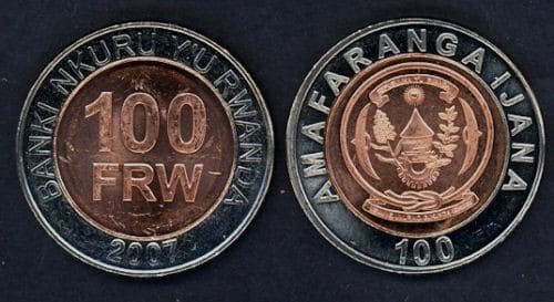 Rwanda, 100 Francs, 2007, KM #32, Bimetal, UNC Condition.