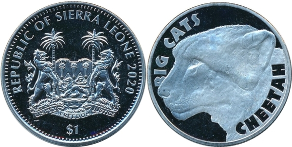 Sierra Leone, 1 Dollar, 2020, KM# 472, Big Cats – Cheetah, UNC Condition.