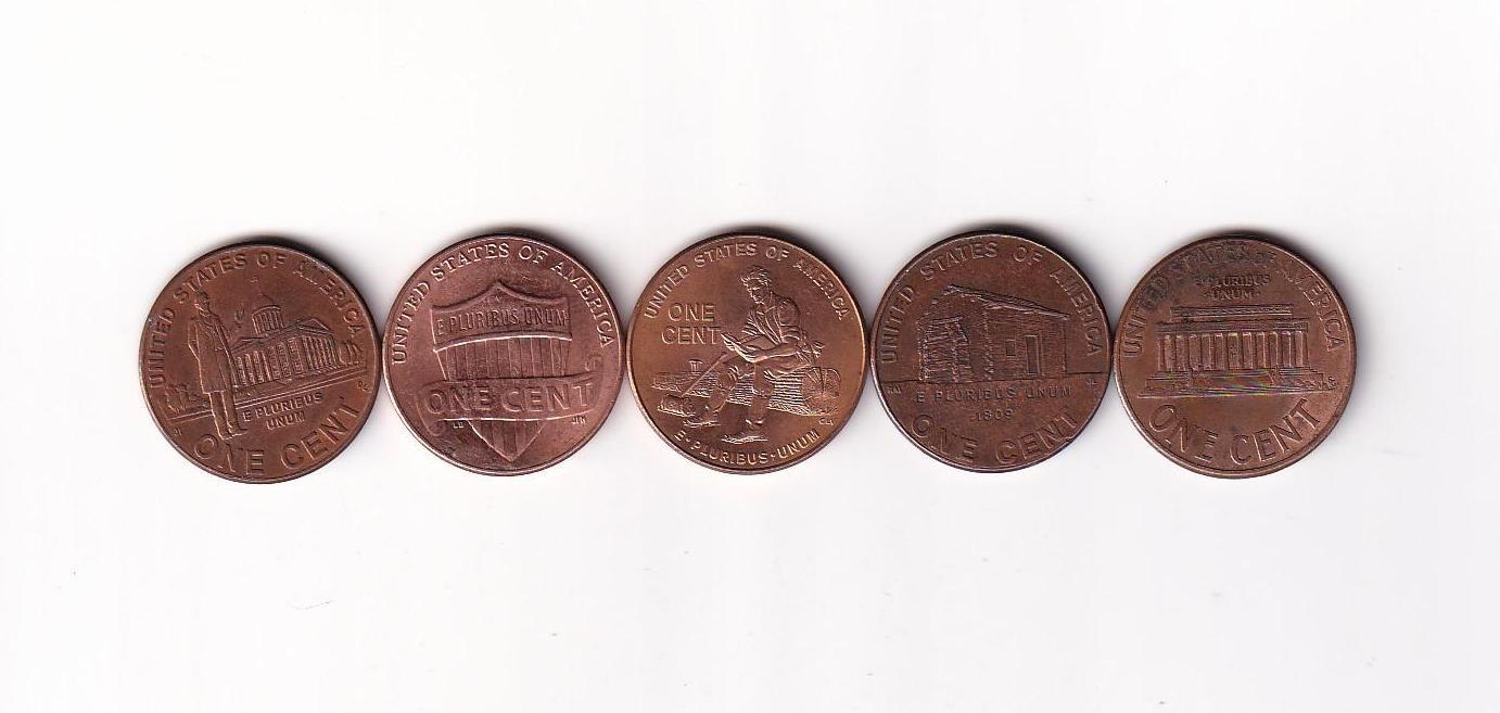 AMERICA ONE CENT 5 DIFFERENT COMMEMORATIVE COIN SET #I-155