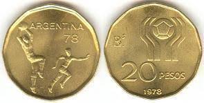 Argentina, 20 Pesos, 1978, 1978 World Soccer Championship, KM #75, AUNC Condition.