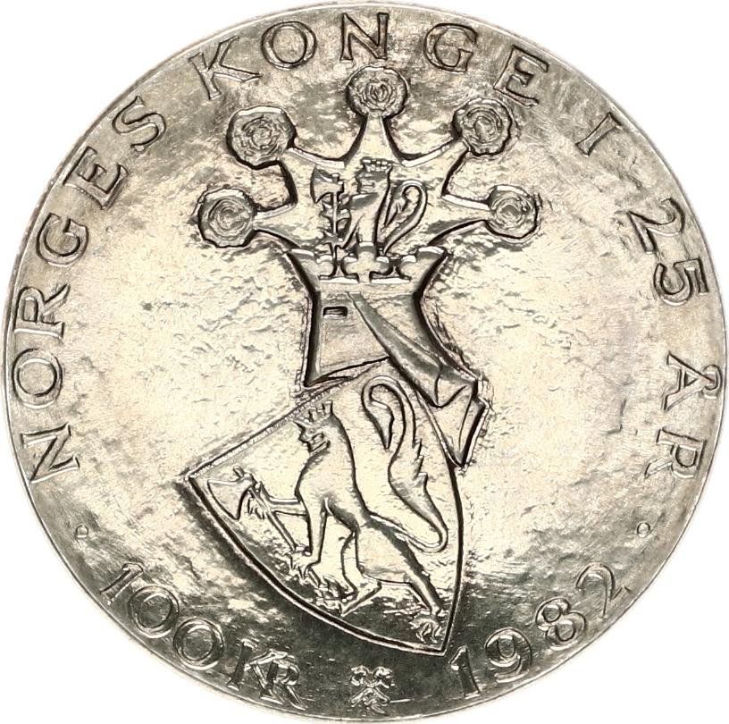 100 Kroner Silver Olav V Anniversary of King Olav’s Reign Norway Ultra Rare