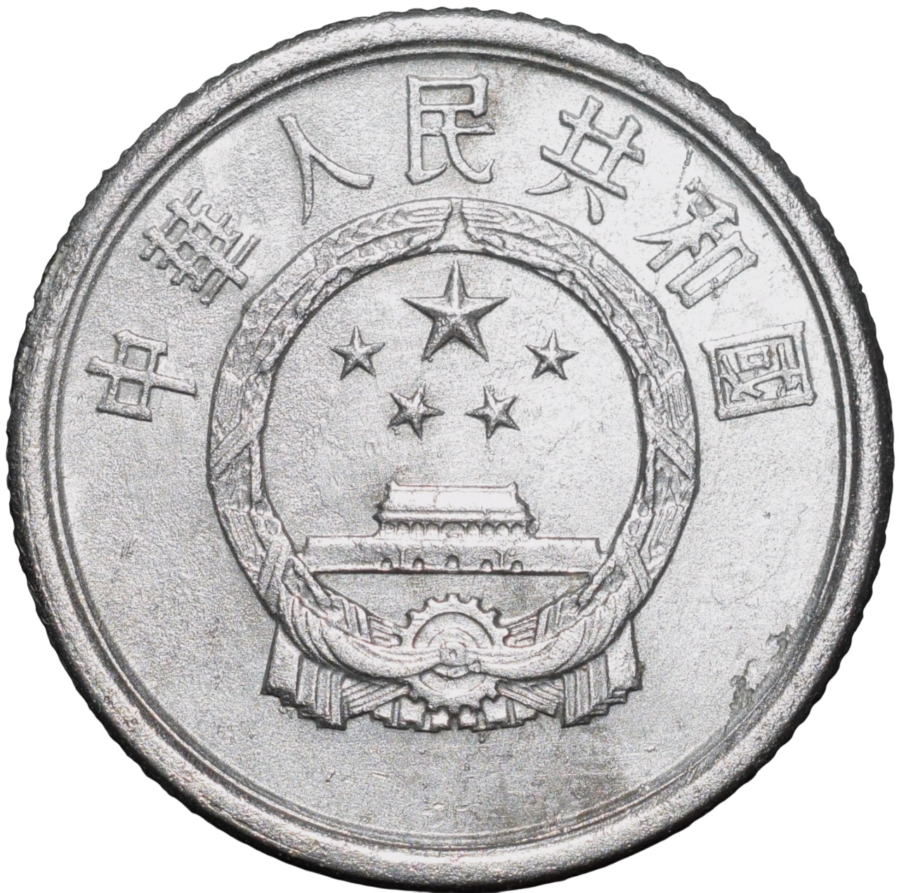 Republic Of China, (AD 1986), Aluminium 1 Fen, Obv: Denominaion & Date, Rev: Communist Symbol & Inscription, 0.60 Gms, 16.50 mm, Extremely Fine.