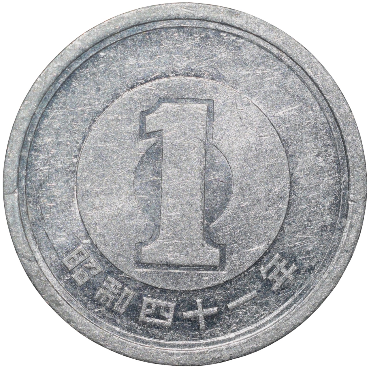Japan, (AD 1989-2019), Aluminium 1 Yen, Obv: Sprouting bamboo branch in center, authority on top, value and denomination on bottom, Rev: Big value within two inner circles, date below, 1.02 Gms, 19.45 mm, About UNC Grade.