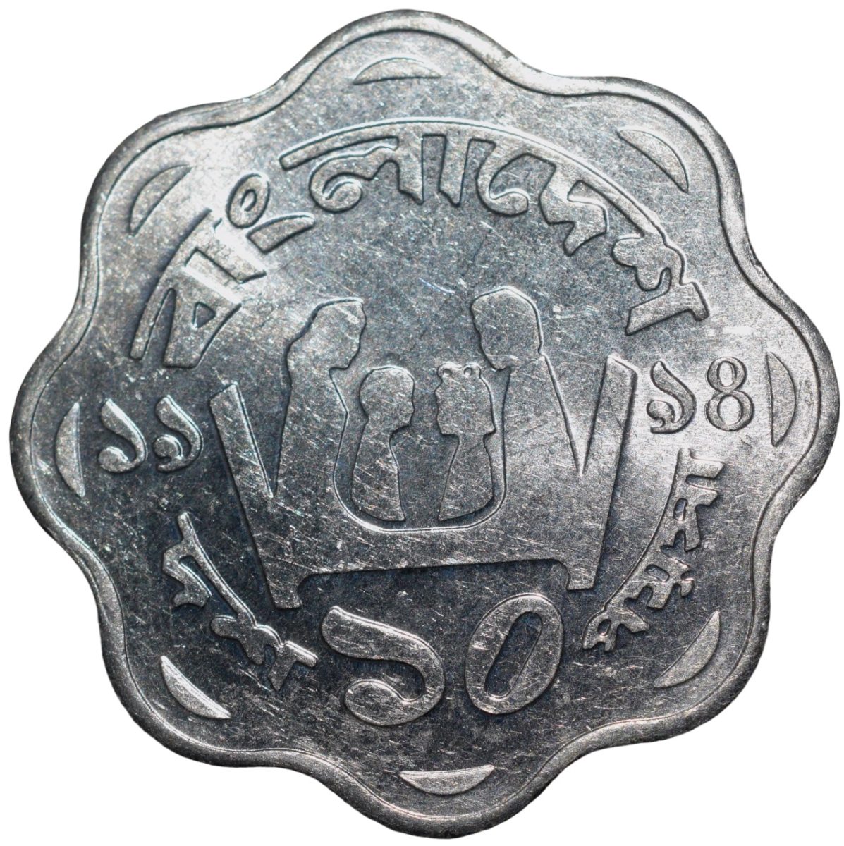 Step back in time to the year 1994 with this exceptional collectible piece from Bangladesh. This Aluminium 10 Poisha coin features the iconic National Emblem of Bangladesh on the obverse side, symbolizing the nation’s core values of nationalism, secularism, socialism, and democracy. The reverse side showcases a heartwarming scene of a family with two children, encapsulating the essence of familial bonds. Weighing 2.00 grams and measuring 24.00mm, this coin is in UNC (NEW) grade, ensuring its pristine condition for collectors. With intricate details and historical significance, this coin holds not just monetary value but also cultural and historical importance. Ideal for numismatists and history enthusiasts, this coin offers a glimpse into Bangladesh’s heritage and serves as a tangible piece of history to cherish for years to come.