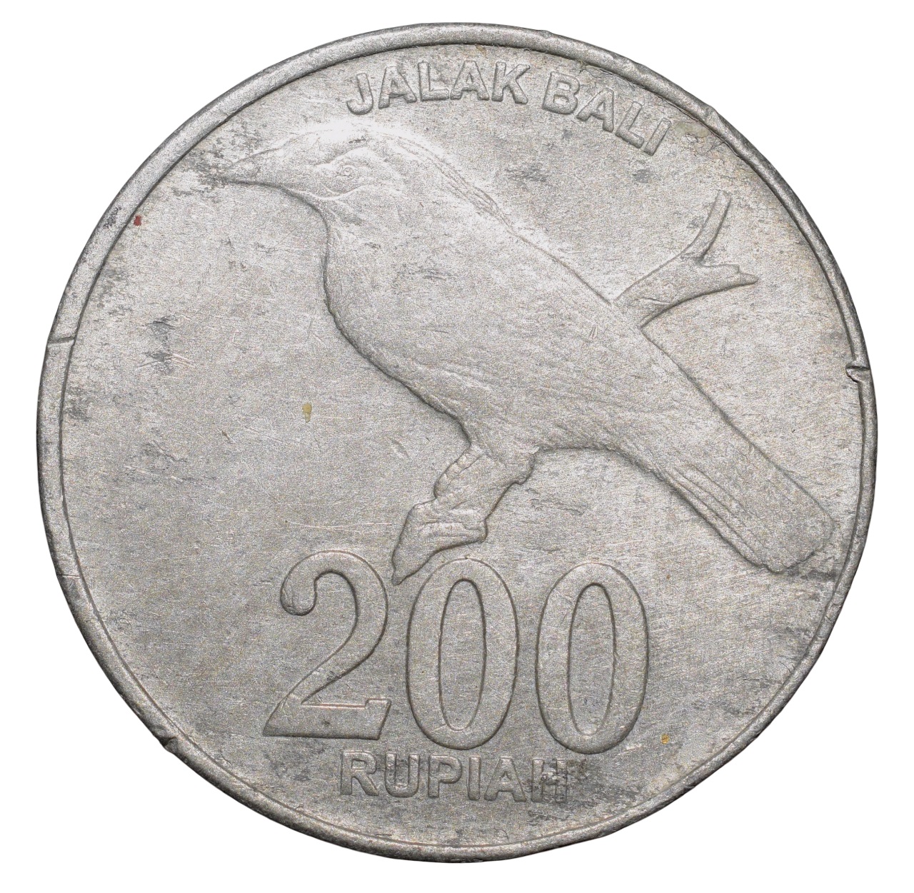 Aluminium 200 Rupiah of Indonesia (AD 2003) with Bali mynah bird on a branch