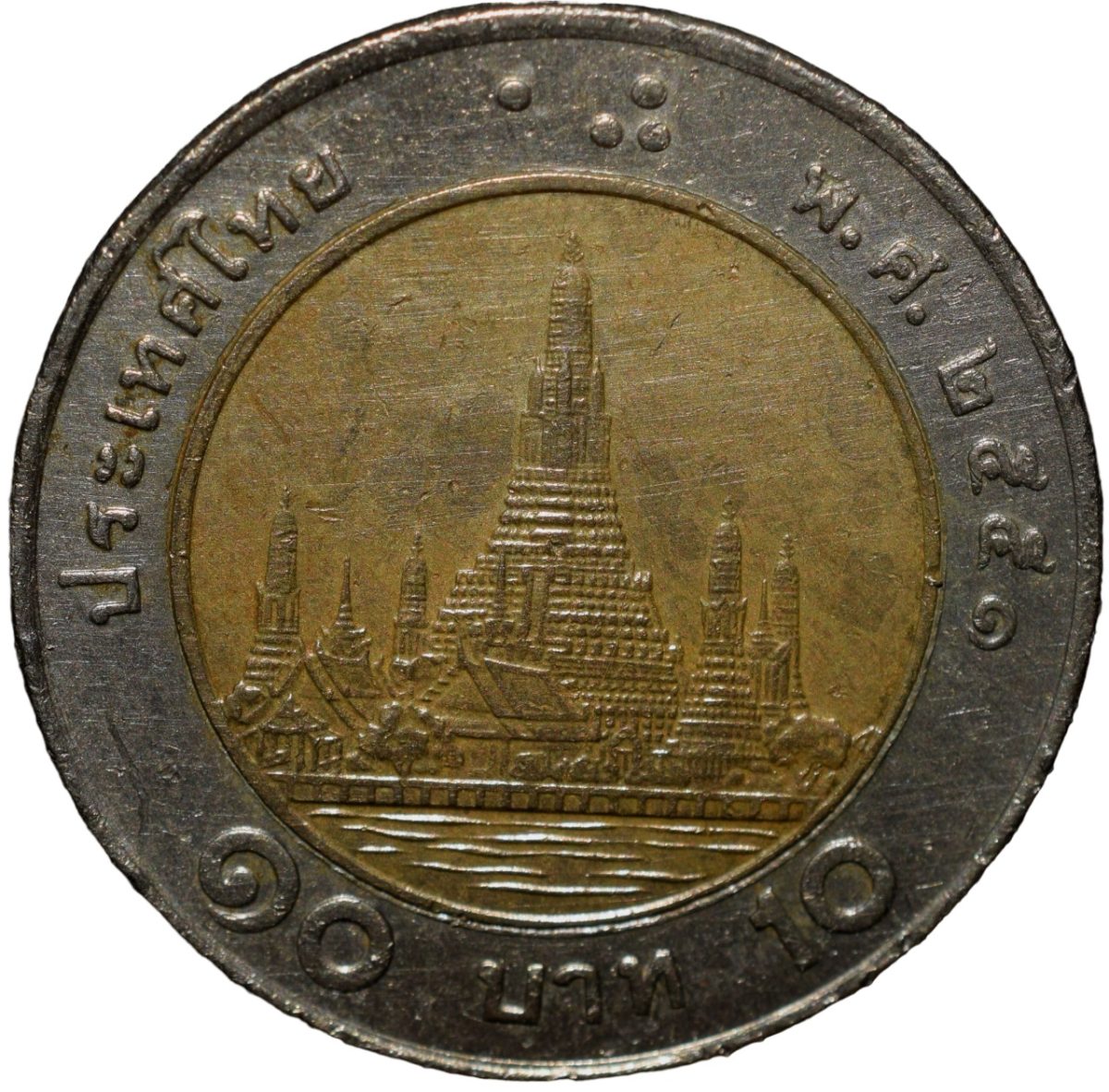 Bi-Metallic 10 Bhat of Rama IX (AD 1988-2008) of Thailand Country with Arun Temple (Temple of the Dawn), Bangkok