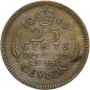 Brass 25 Cents of George VI (AD 1943) from Ceylon (Sri Lanka)