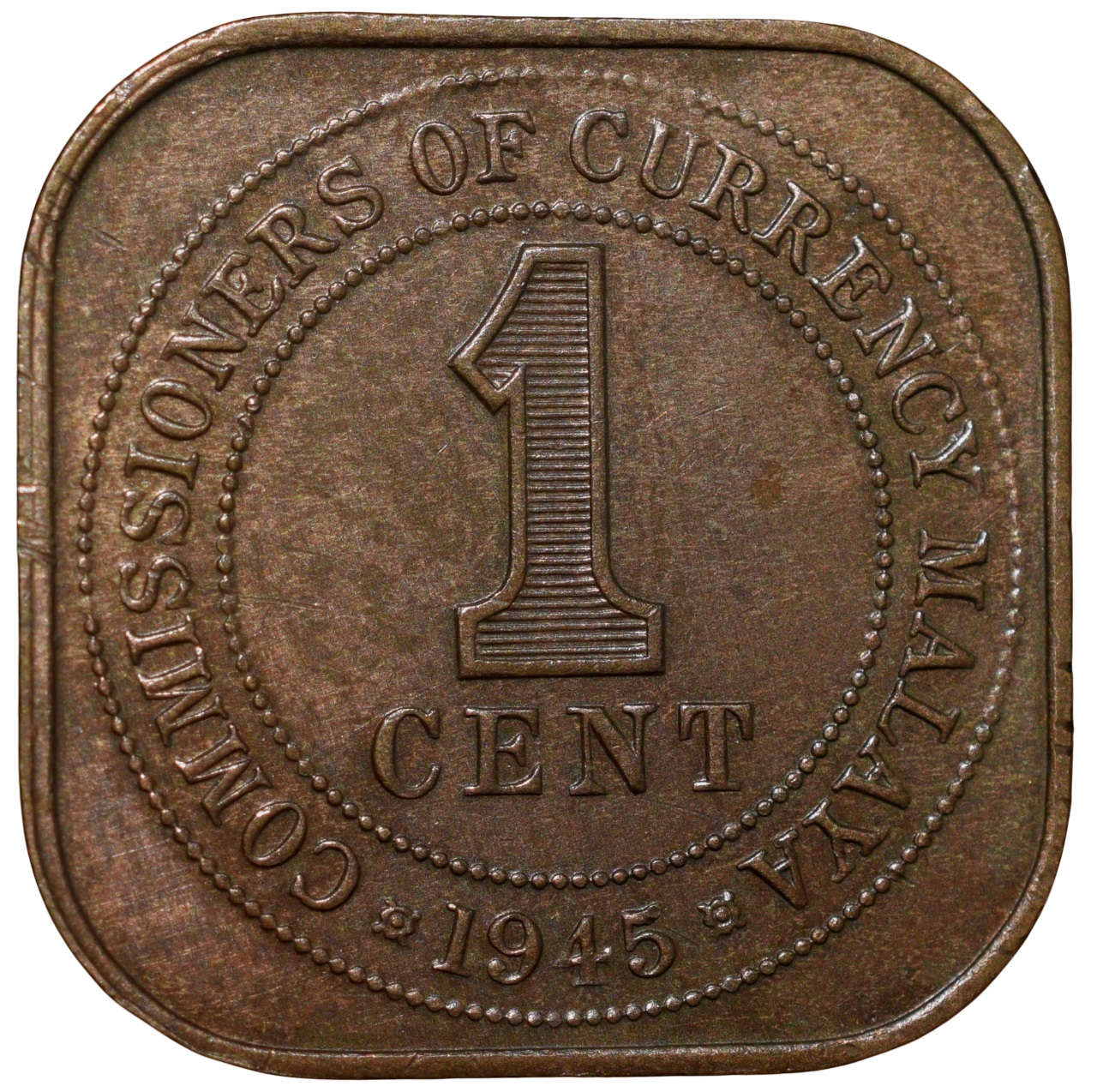 British Commissioners of currency of Malaya, George VI(AD 1945), Bronze Cent, Obv: George VI Profile Bust facing left, Inscriptions round, Rev: Denomination, Date & Inscriptions, 4.40 Gms, 19.90 Gms, Extremely fine.