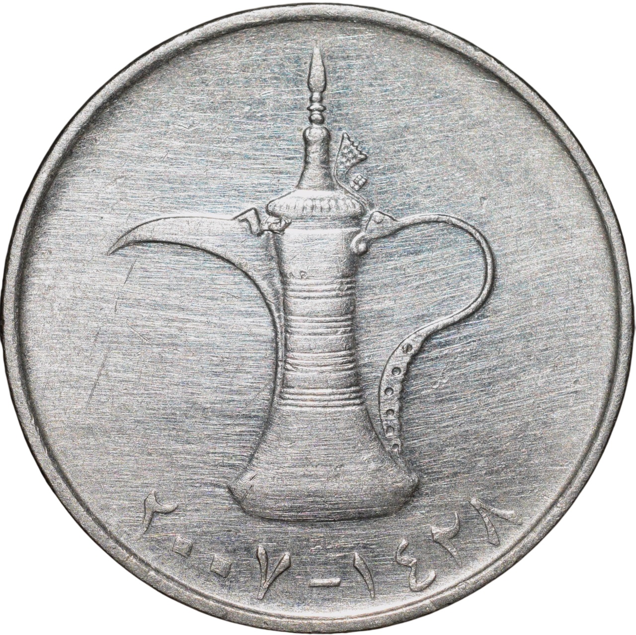 Copper-Nickel 1 Dirham of United Arab Emirates (AD 2007) with Dallah (traditional Arabic coffee pot)