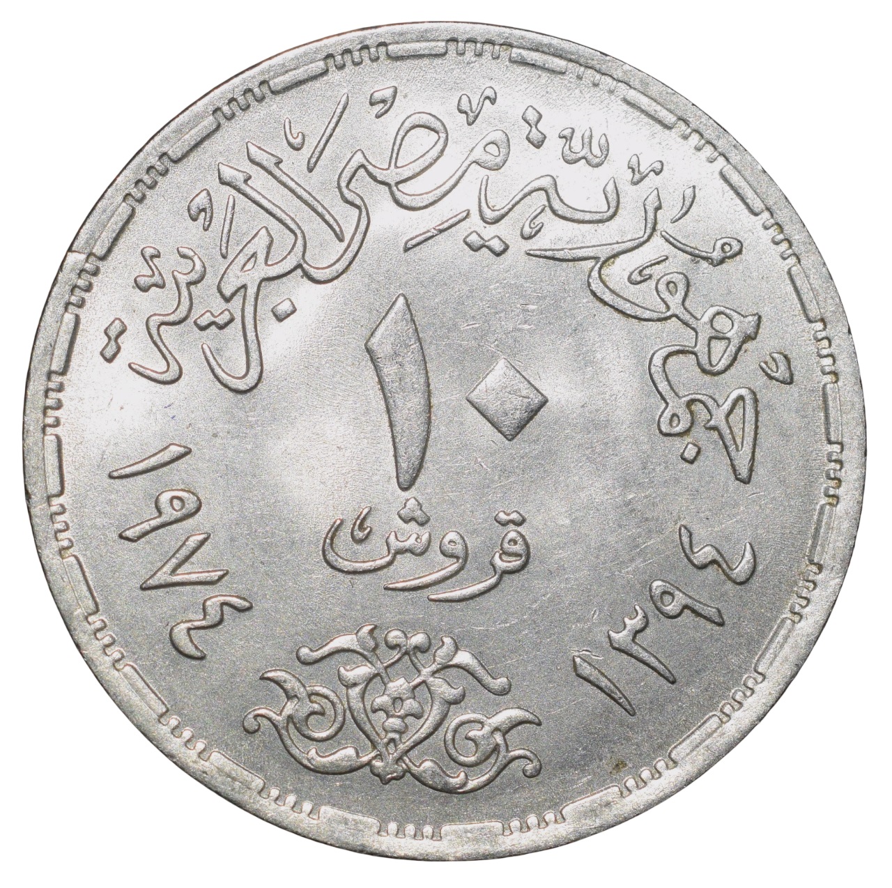Copper-Nickel 10 Qirsh of Egypt Country (AD 1973) Commemorative issue ‘First Anniversary – October War’