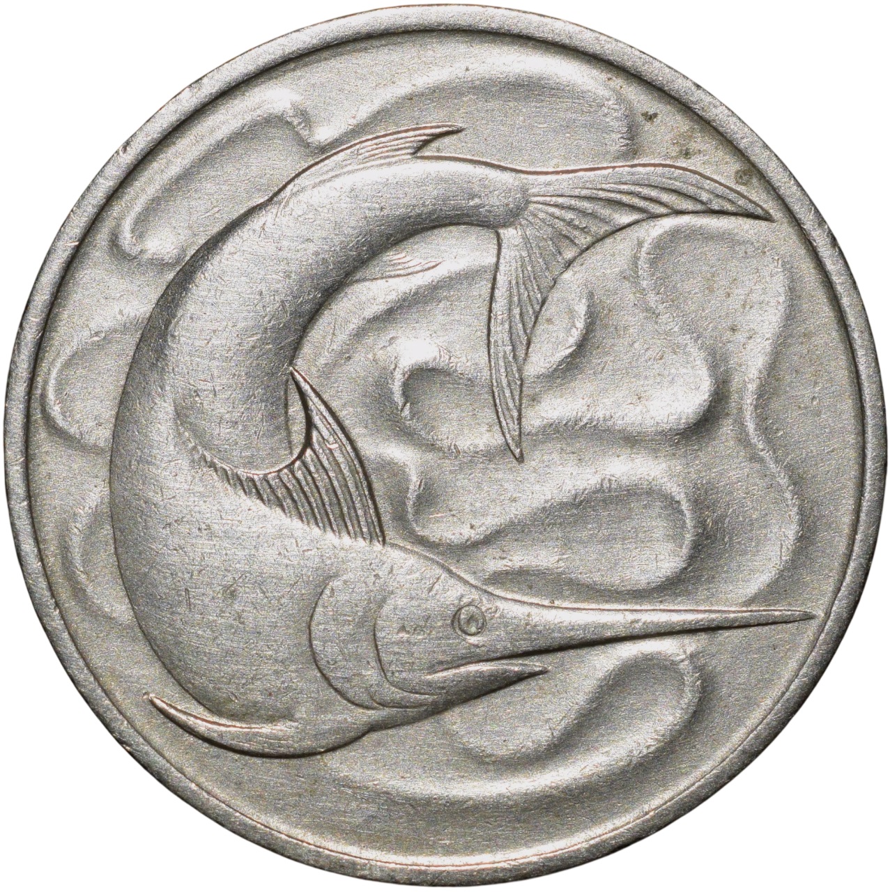 Copper-Nickel 20 cents of Singapore (AD 1967) with Swordfish (Xiphias gladius)