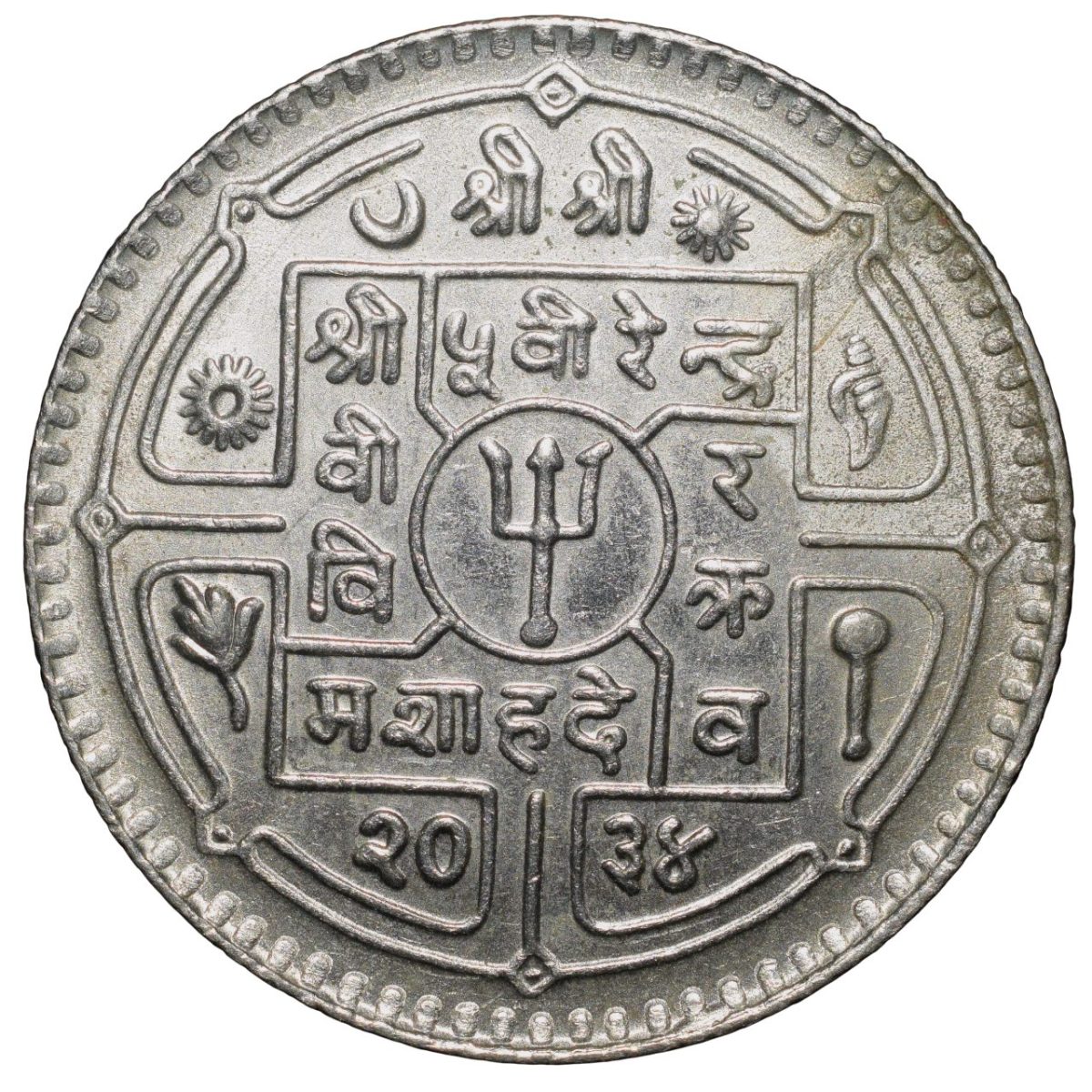 Copper-Nickel Rupee of Virendra Vira Vikrama(VS2034) of Nepal UNC Grade