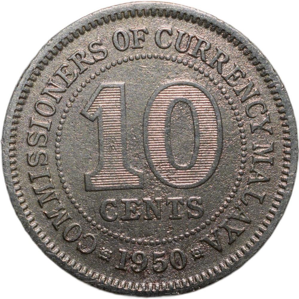 Nickel 10 Cents of George VI (AD 1950) from Malaya