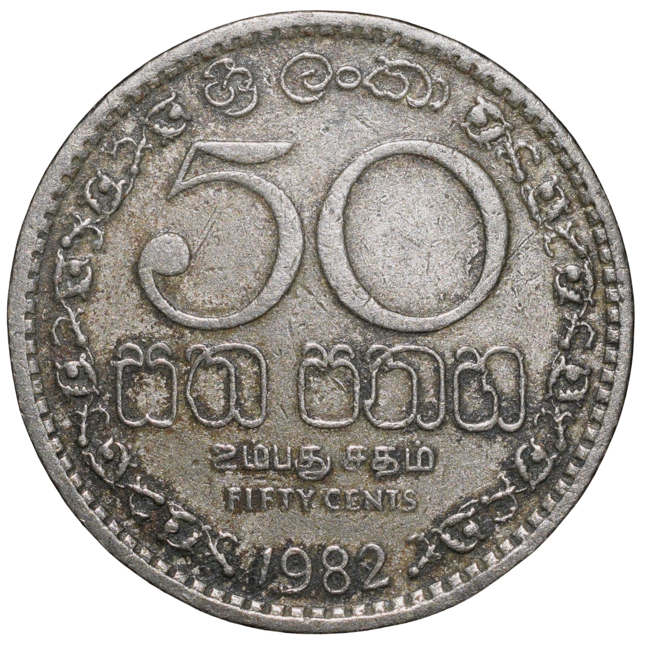 Sri Lanka, (AD 1982), Copper-Nickel 50 Cents, Obv: Denomination & Date, Rev: Coat of Arms, 5.46 Gms, Extremely Fine.