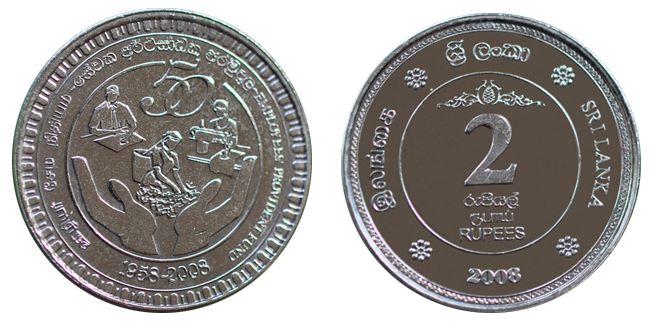 Sri Lanka, Rupees 2, 2008, 50th Anniversary of Employees Provident Fund, KM# 178, UNC Condition.