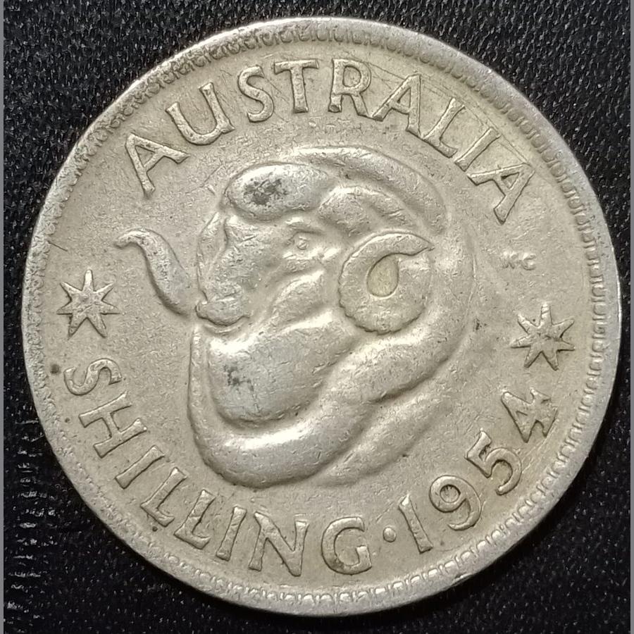 Australia 1954 Silver One shilling Elizabeth rare coin #sku 174