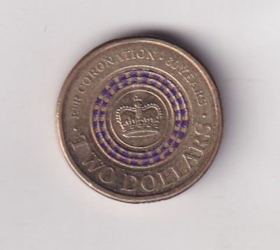 Australia 2 Dollars – Elizabeth II 4th Portrait – Coronation Jubilee Rare Coloured Coin #Z-142