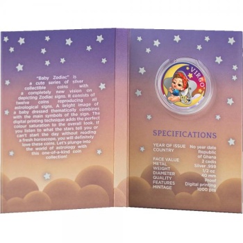 Baby Zodiac. Virgo – Republic of Ghana 2 Cedis 2022 1/2 oz silver coin in mint folder pack RARE BEAUTIFUL