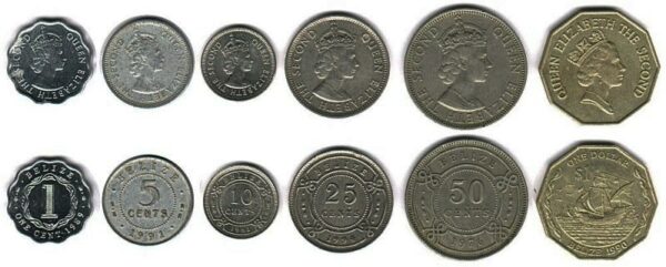 BELIZE, 6 COIN SET, MIXED CONDITION.