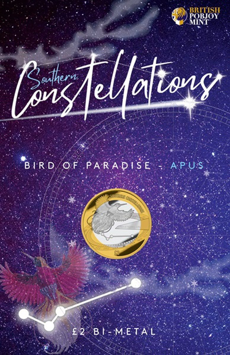 British Antarctic Territory, 2 Pounds, 2022, Southern Constellations – Apus constellation, Bird of Paradise, KM# 55, Bimetal, Mint coin card.