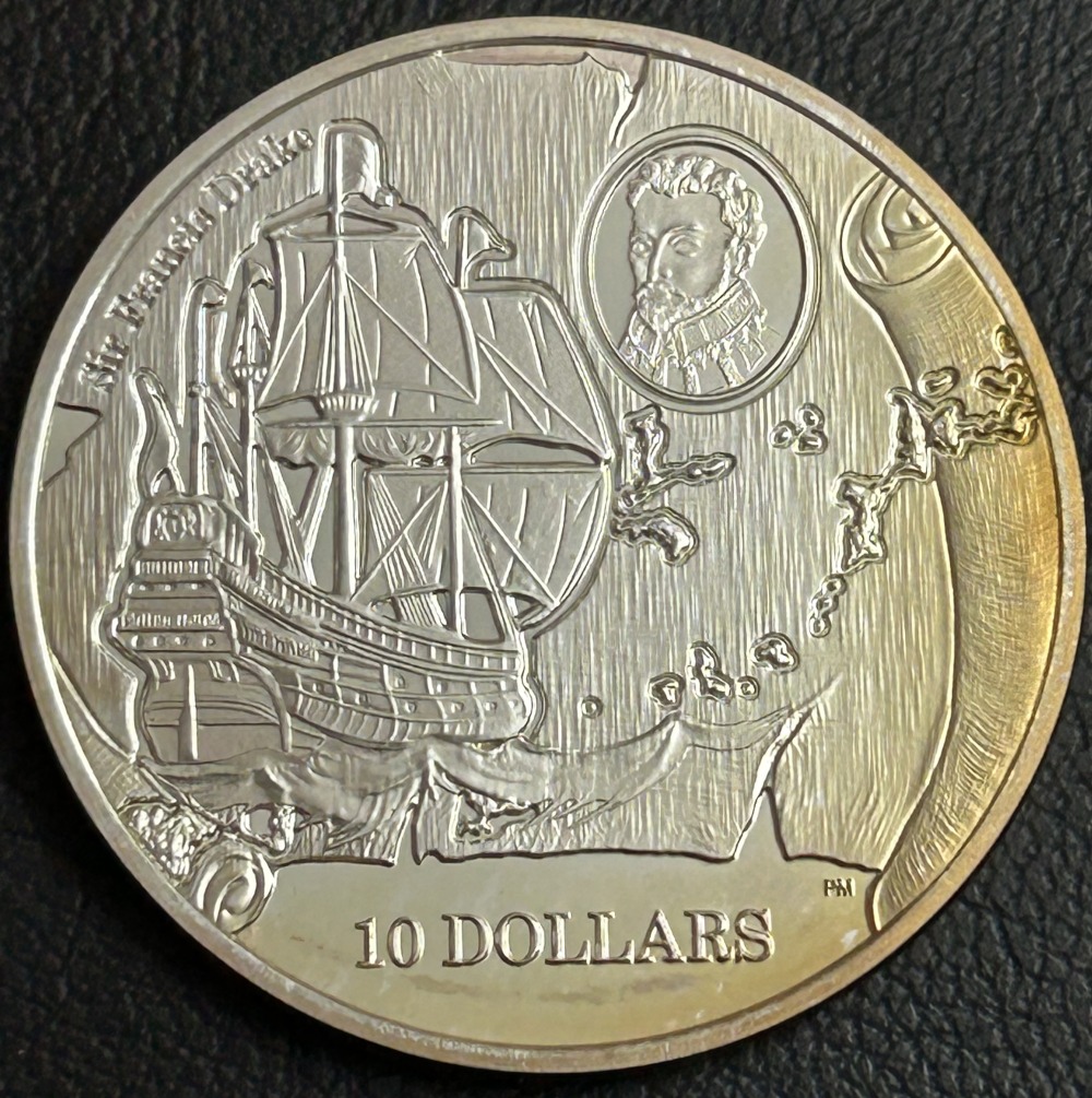 British Virgin Islands 10 Dollars – Elizabeth II 475th Ann. Birth of Sir Francis Drake Silver