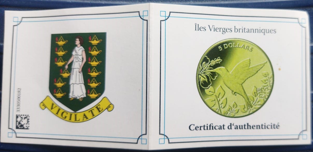 British Virgin Islands, 5 Dollars, 2017, Bee Hummingbird, Titanium (.990), UNC Condition, COA.