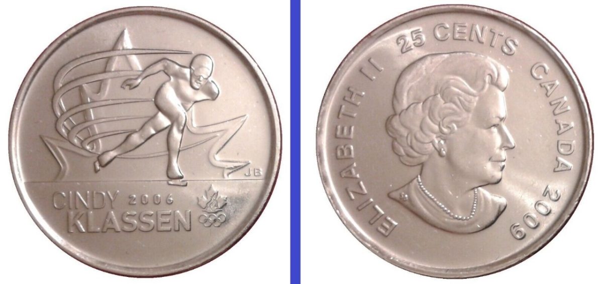 🏅 Commemorative 2009 Canada 25 Cents coin celebrating Cindy Klassen’s 5 Olympic medals at Torino 2006