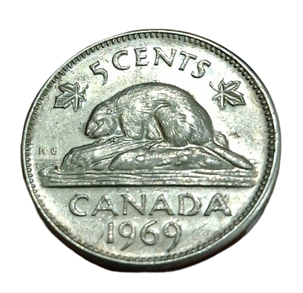 CANADA Nickel 5 CENTS Year 1969 Queen ELIZABETH-II **SCARE** High Collectable Grade.